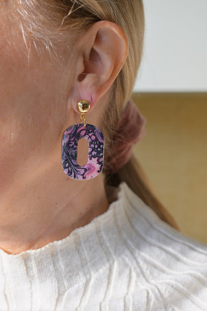 Les boucles d’oreilles Madeleine sont façonnées à la main en pâte polymère et montées sur des apprêts dorés à l’or fin. Leur motif floral, inspiré des fleurs d’autrefois, mêle délicatesse vintage et esprit bohème contemporain.